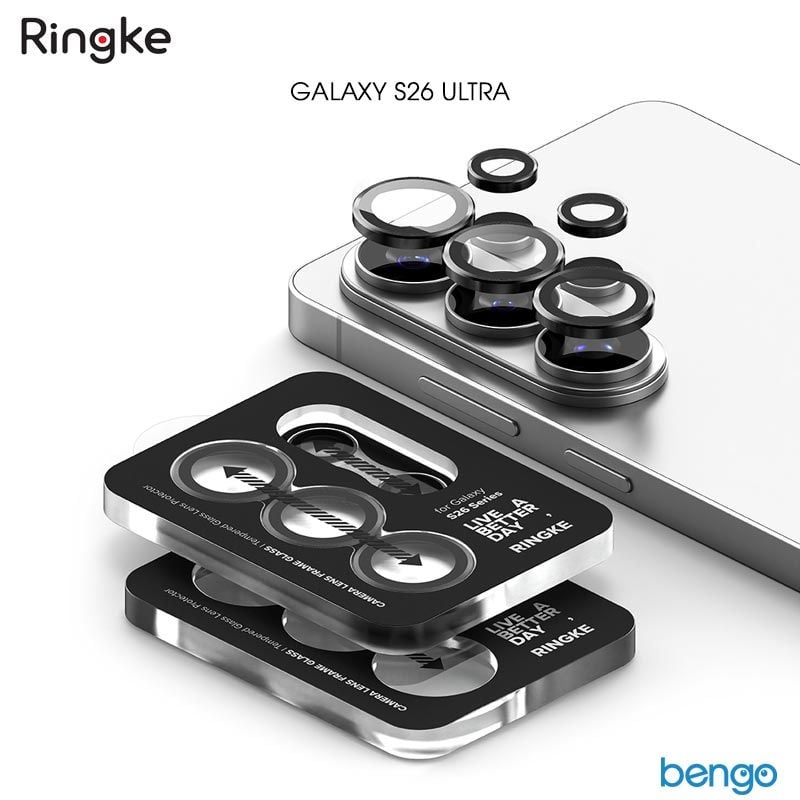 - Dán camera Samsung Galaxy S26 Ultra RINGKE Camera Lens Frame Glass gồm 3 lens rời, bảo vệ tốt hơn từng mắt camera.