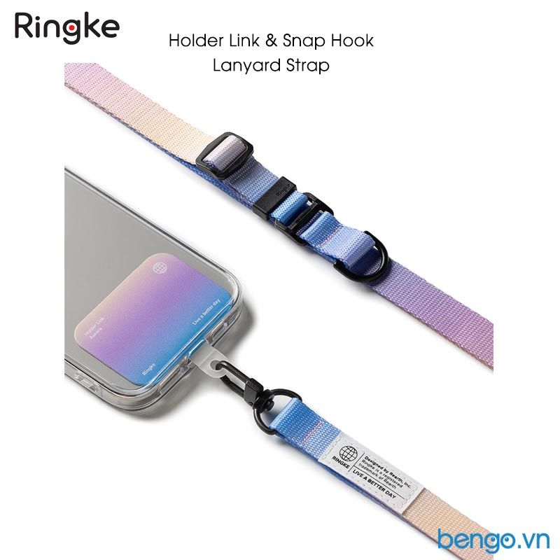 - Dây đeo Ringke Holder Link & Snap Hook Lanyard Strap là sự kết hợp độc đáo giữa hai dòng dây đeo bán chạy của Ringke: Holder Link Strap và Basic Lanyard Strap, có thể sử dụng được cho các dòng điện thoại khác nhau.