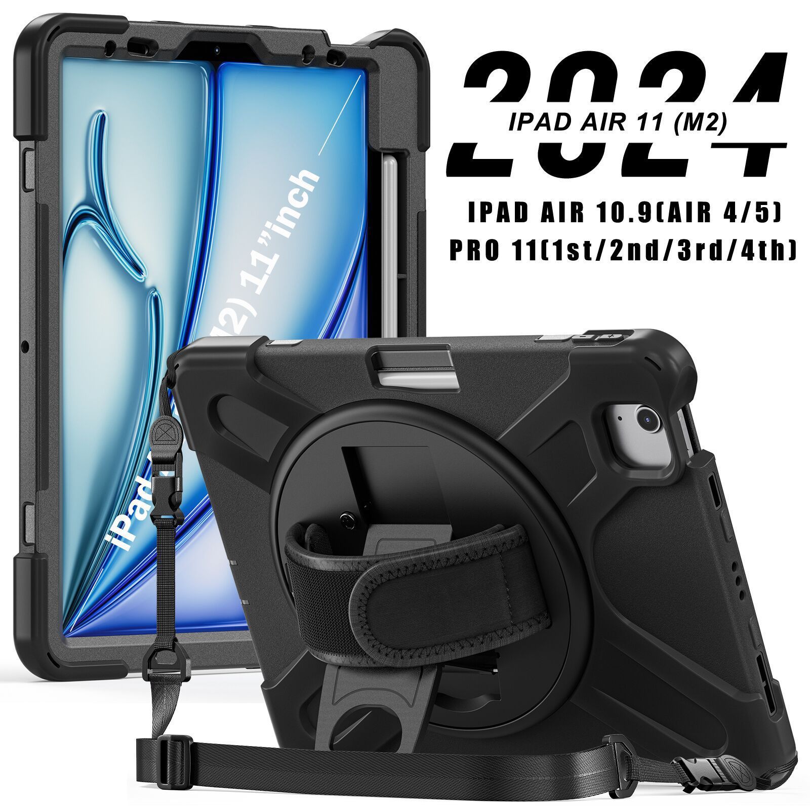 Ốp lưng iPad Air 6 13" M3/M2 chống sốc có dây đeo và chân dựng