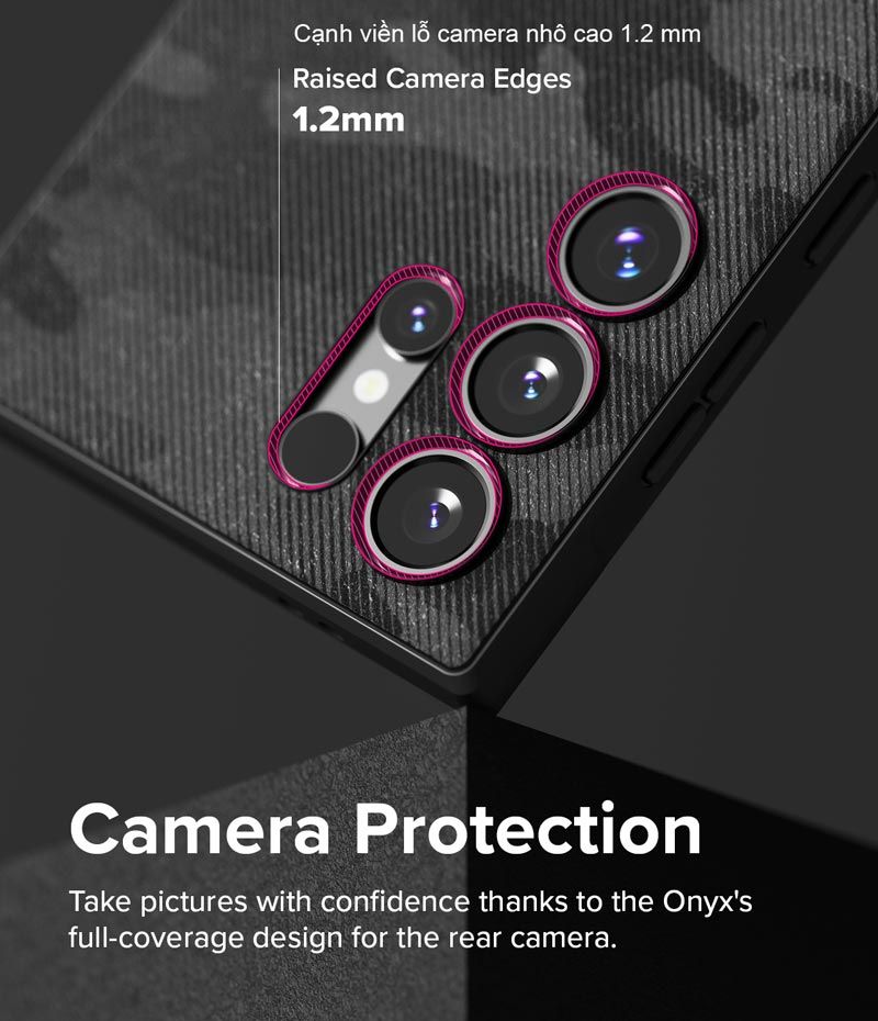 - Thiết kế cạnh viền lỗ camera nhô cao 1.2 mm và thiết kế cạnh viền màn hình nhô cao 1.5 mm giúp chống trầy.